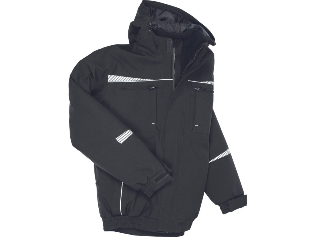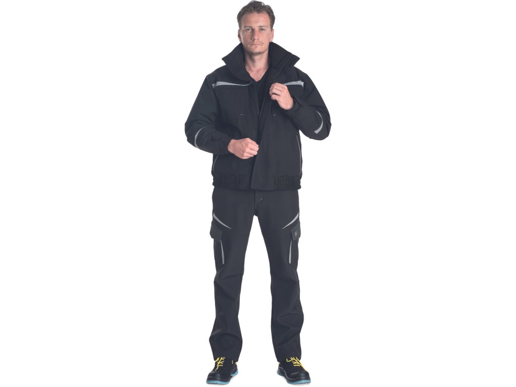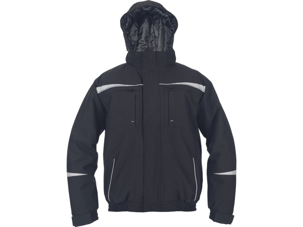 Popis: • nepremokavá zimná pilotná bunda s odnímateľnou zateplenou kapucňou • zapínanie na zips so suchým zipsom • dve bočné vrecká na zips a dve náprsné vrecká • dve vnútorné vrecká • elastické manžety rukávov • elastický pletený spodný lem • reflexné detaily a lemovanie