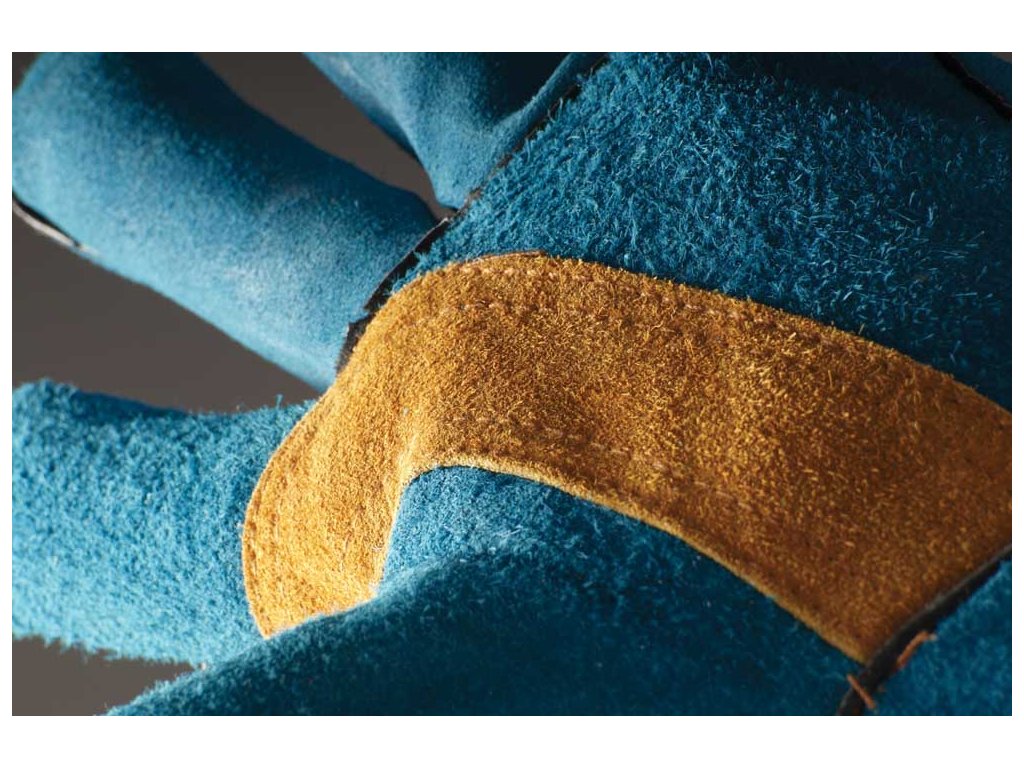 Celokožené rukavice z hovädzej štiepenky v dĺžke 35 cm, s bavlnenou podšívkou, zosilnením v dlani a krytými švami.