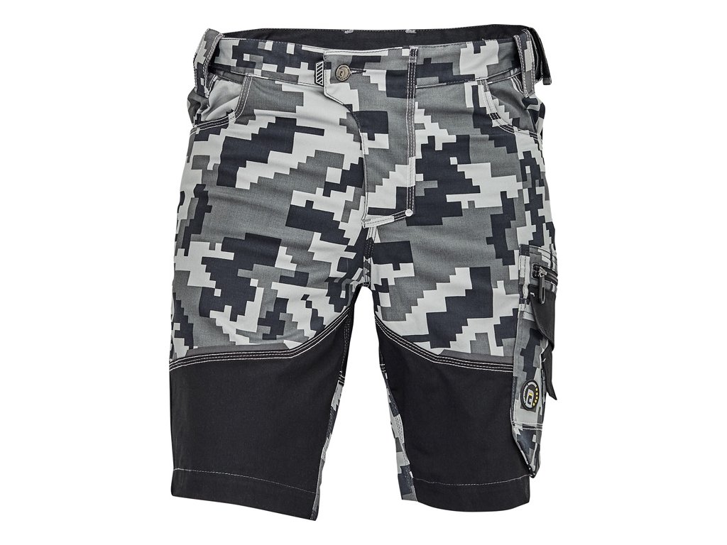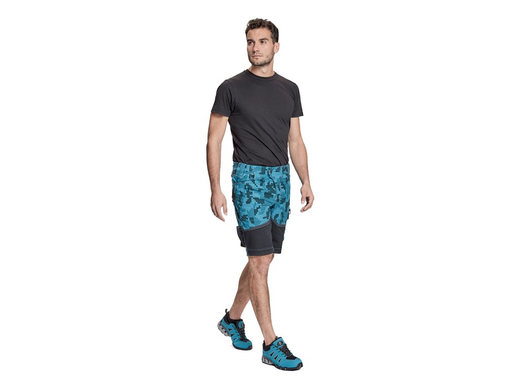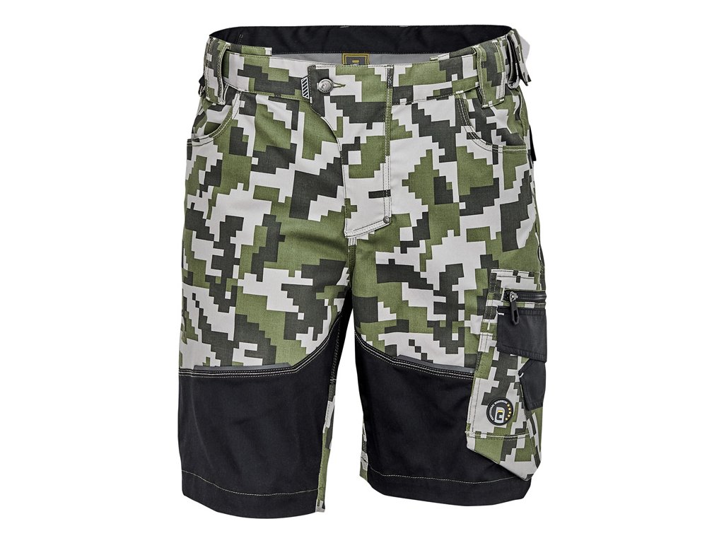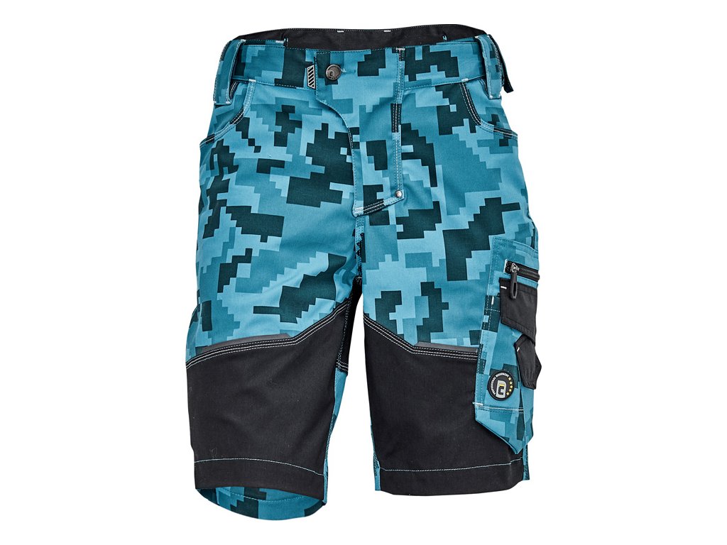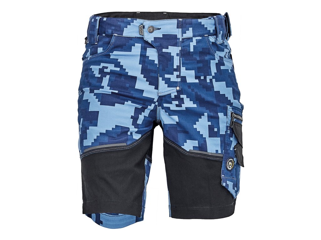 pracovné šortky, elastický inovatívny materiál TRIFIBETEX, slim strih, znížený pružný pás, odolné trojité prešitie nohavíc a sedu, 2 predné klínové vrecká, 2 zadné vrecká na suchý zips, ľavé stehenné multifunkčné vrecko, pravé stehenné vrecko na meter a nôž, "D" krúžok, pútko na náradie v páse, originálne spracovanie zapínanie nohavíc, reflexné prvky vo farebnom odtieni. Materiál: 62% bavlna, 35% polyester, 3% Spandex®, twill, 260 g/m2.