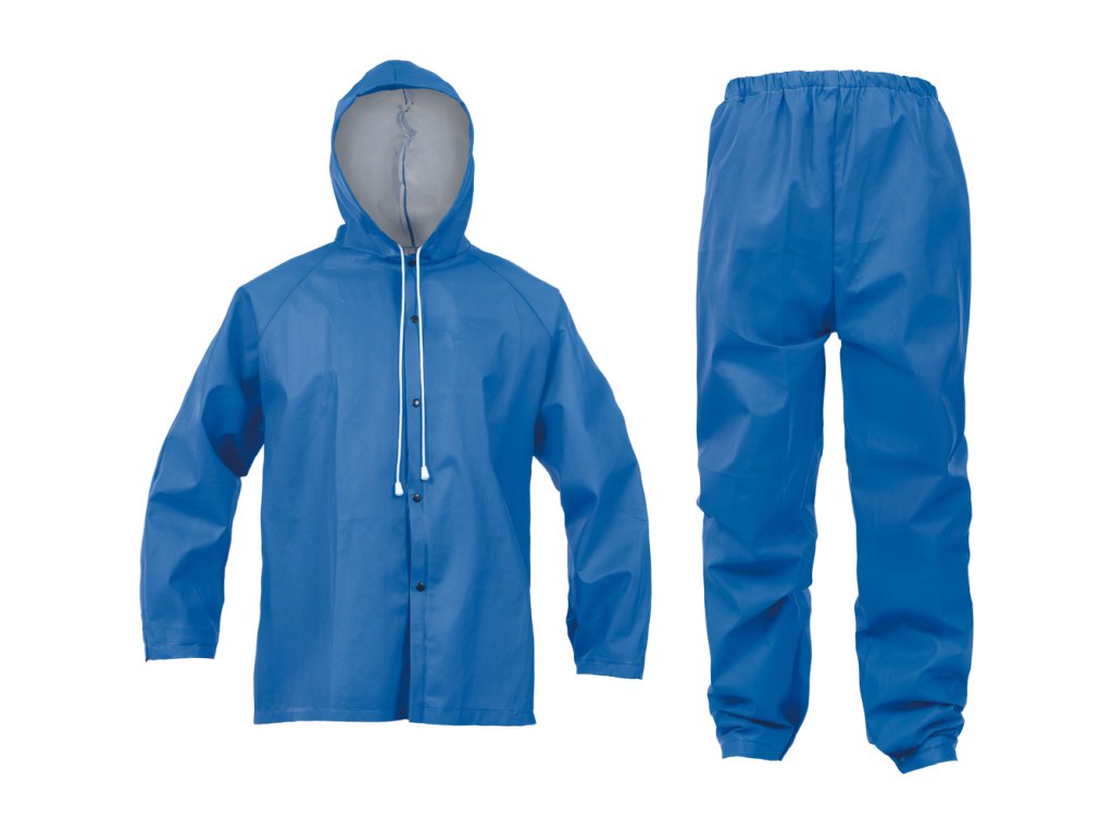 Popis: • set nepremokavé bundy s nohavicami • bunda s kapucňou a so zapínaním na cvoky • obvod kapucne je možné upraviť pomocou šnúrky • ventilácia v podpazuší • nohavice s elastickým pásom • manžety rukávov a spodný lem nohavíc so zapínaním na cvoky • zatavené švy • 100% recyklovateľný odev