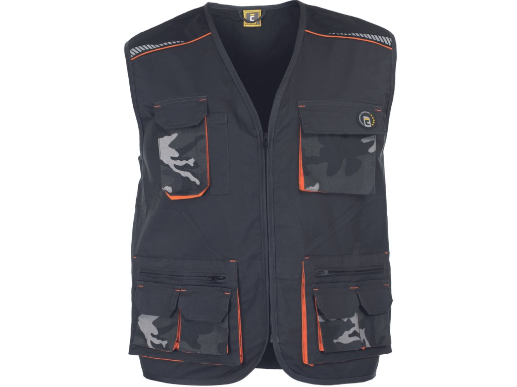 Popis: • pánska vysoko odolná strečová vesta • predné zapínanie na zips • multifunkčné vrecká • zosilnenie Oxford 600D v oblasti ramien • potlač reflexných segmentov